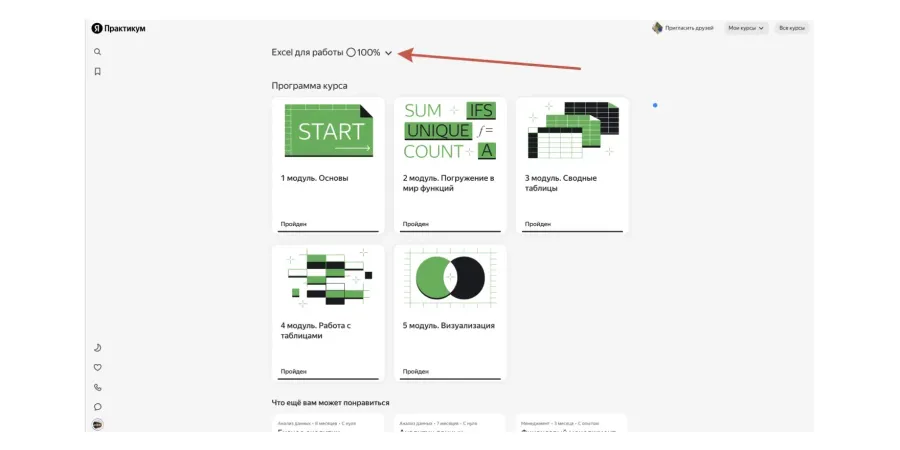 Платформа держит темп: каждая линия обучения начинается с ориентационной сессии, где студент ставит цель — найти подходящую вакансию к конкретной дате. Есть карьерный центр, который помогает оформить резюме и ответить рекрутеру без паники.